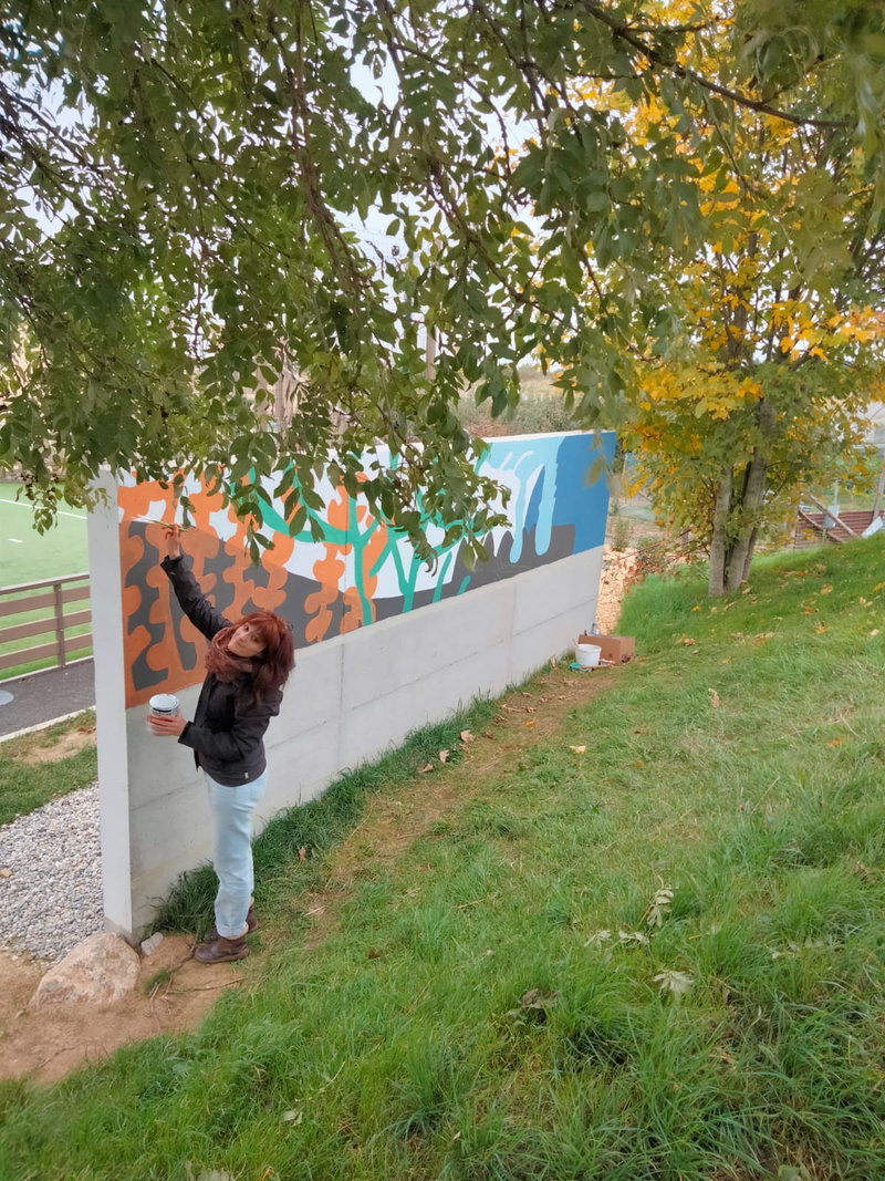 Réalisation d'une fresque au city stade de Lemps (07), en collaboration avec les enfants de l'école de la commune. Le visuel à été conçu à partir des graphismes réalisés par les enfants lors de précédentes interventions.