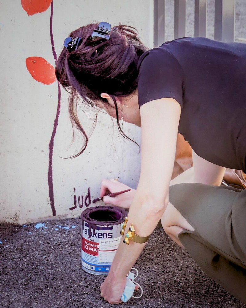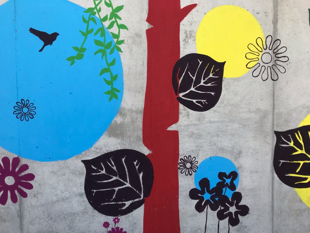 Réalisation d'une fresque pédagogique au sein de l'école Gisèle Halimi à Saint-Vallier sur Rhône. Ici, j'ai été invitée à réaliser un visuel sur le thème de la couleur et de la nature, (graphiquement accessible aux enfants) puis de pré-tracer le projet sur le mur afin que l'équipe pédagogique puisse amener les enfants à la peinture de celui-ci.