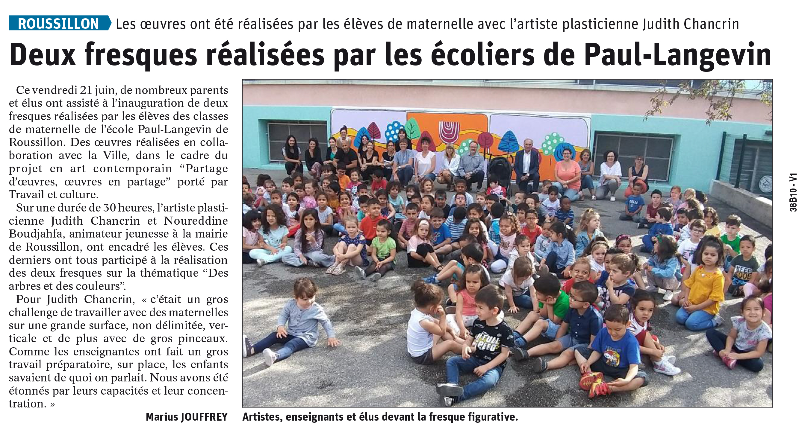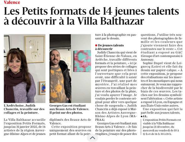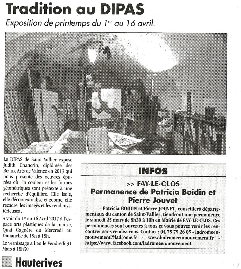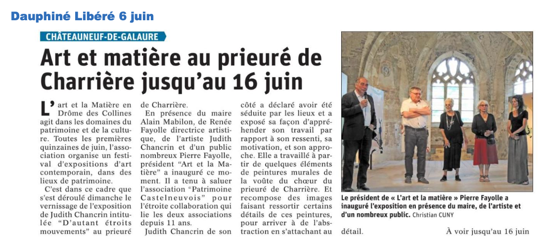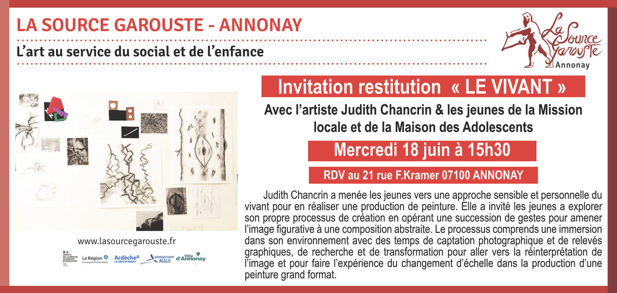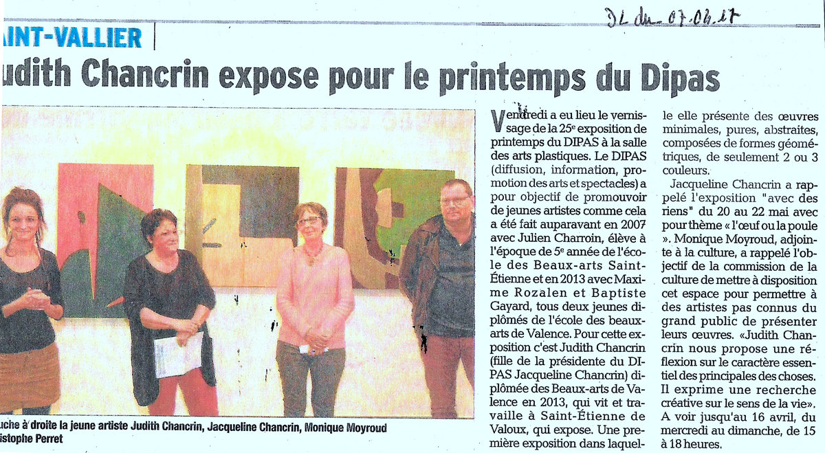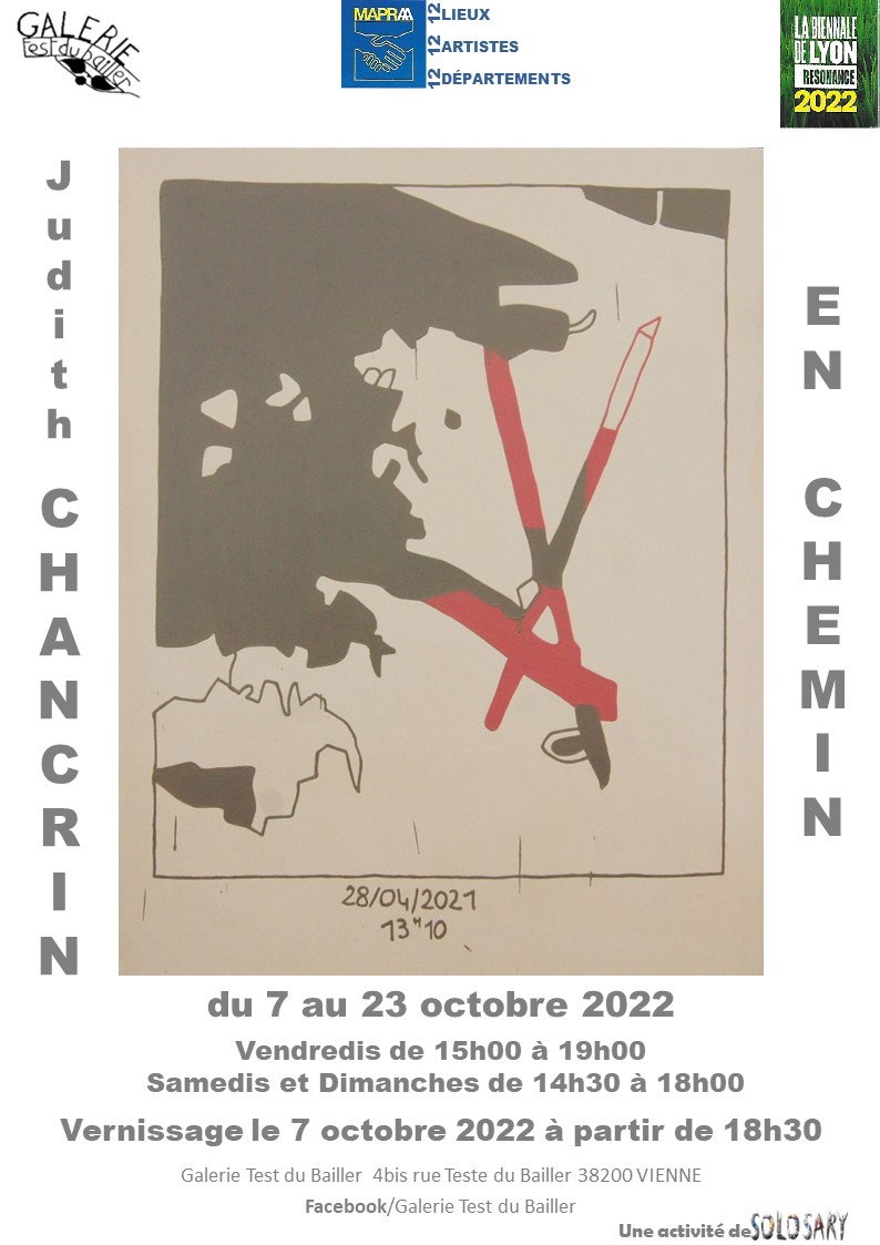 Judith Chancrin est une artiste française née en 1988 qui vit et travaille en Nord-Ardèche, près d'Annonay. A la suite d'un cursus littéraire, elle est Diplomée du DNAP en 2011 puis du DNSEP en 2013 à l'école des Beaux-Arts de Valence (26), formée ensuite en 2019 (certificat d'état RNCP niveau 2) chez Profac, centre de psychologie appliquée et d'art-thérapie contemporaine. Elle développe actuellement sa pratique artistique depuis son atelier, qui se déploie dans des formes variées telle que la peinture, l'assemblage, le collage, l'estampe et l'installation vidéo. Elle intervient de manière régulière où plus ponctuellement dans diverses structures, sur des projets artistiques auprès de différents publics. Qu'il s'agisse d'ateliers proposant une immersion au sein de son processus de travail, principalement orienté vers l'abstraction ainsi que la dimension sensible et poétique de l'objet, ou de réalisations de fresques. La forme de ses interventions est ouverte, adaptable et multiple.