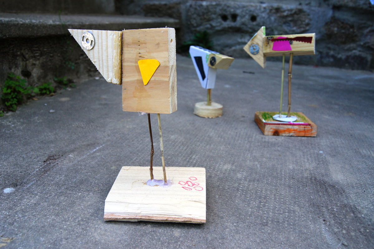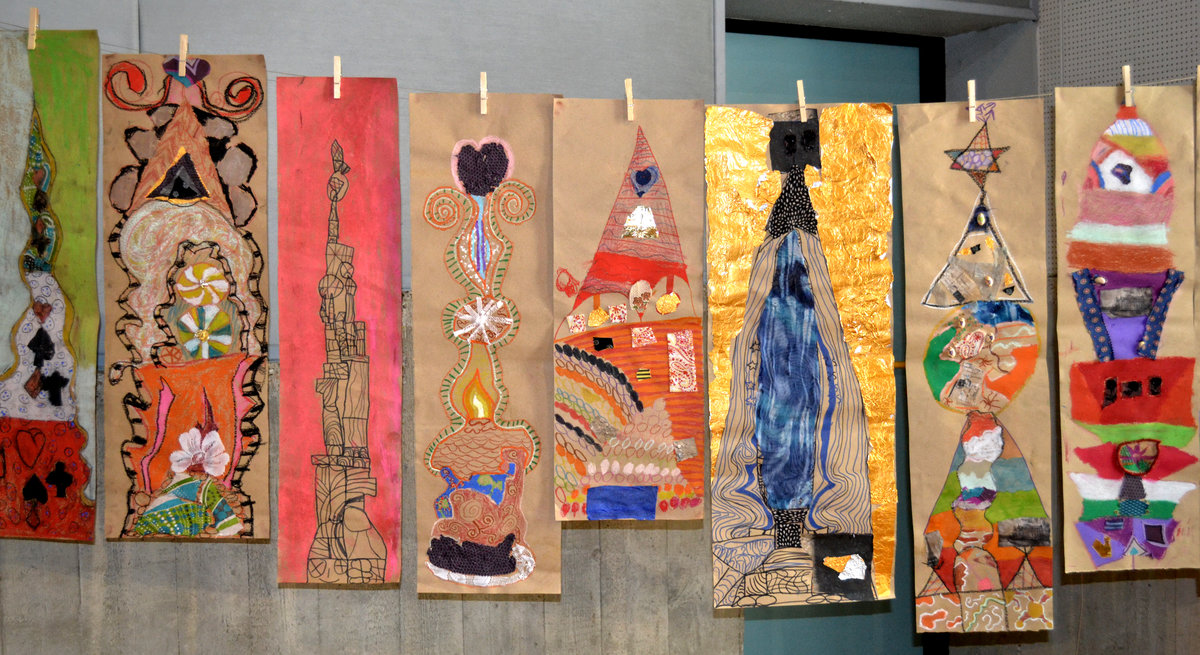 Intervention périscolaires pour la communauté de commune Porte de DrômArdèche, l'Amicale Laïque d'Arras sur Rhône, exposition "Avec des riens" organisée par le DIPAS de Saint-Vallier sur Rhône et projet pédagogique sur l'art brut mené dans le cadre de l'exposition "élévation" au château de Hauterives. 2014/2017.