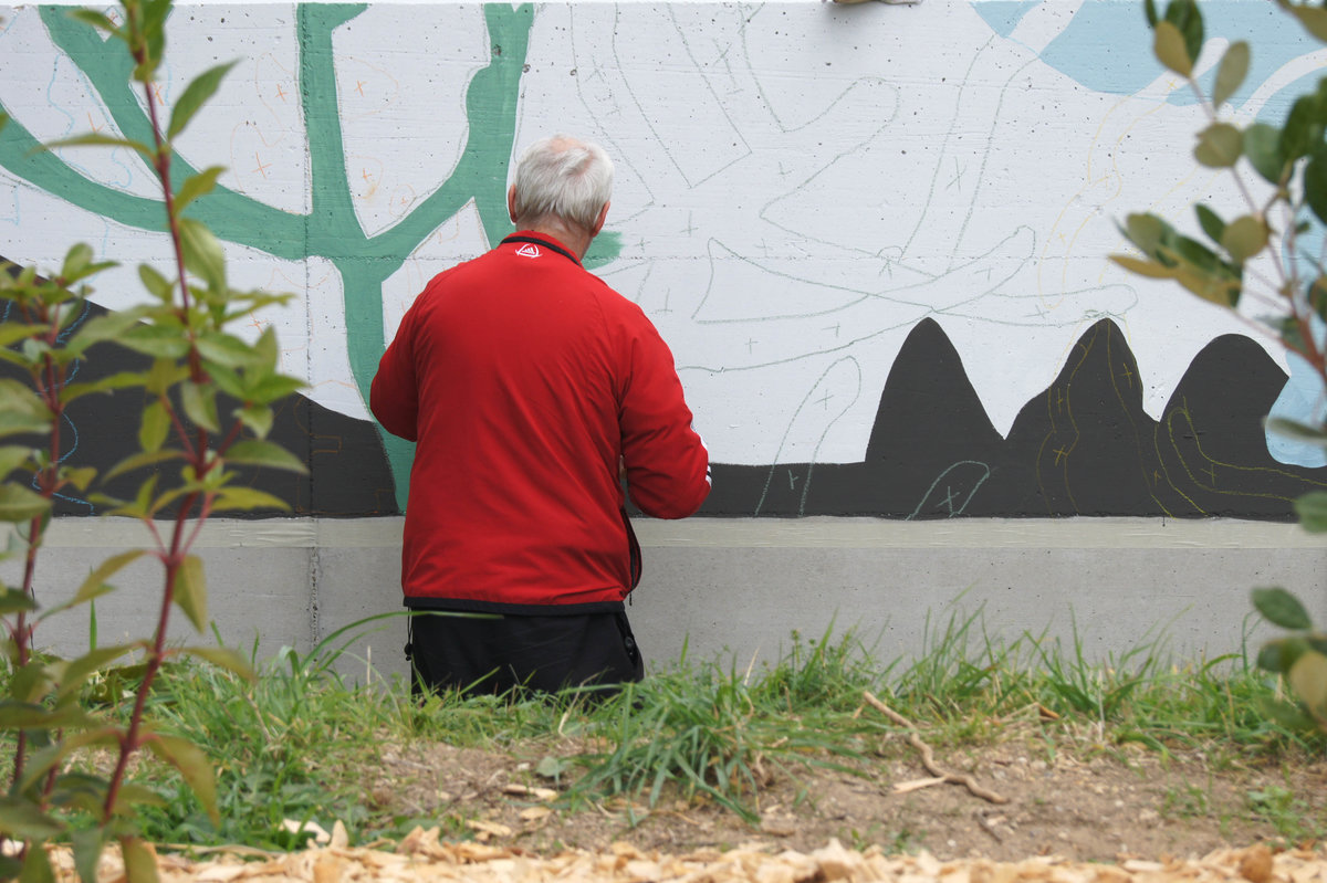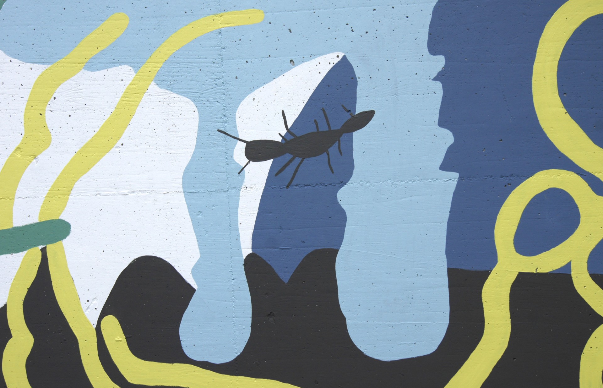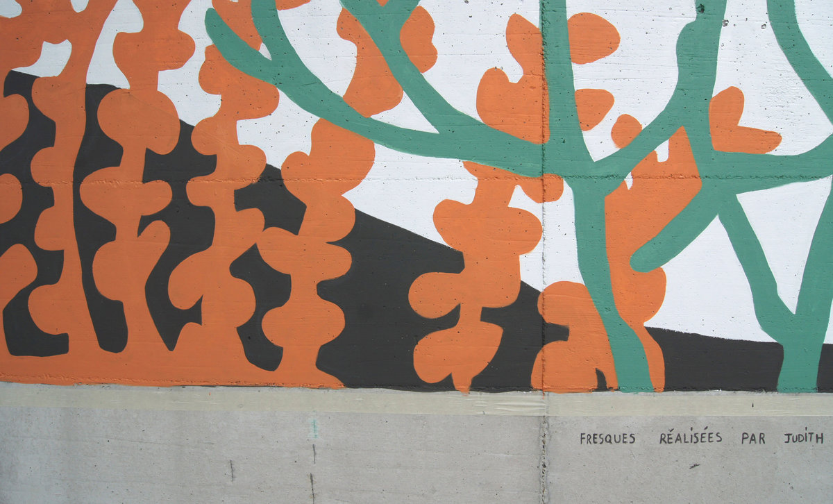 Réalisation d'une fresque au city stade de Lemps (07), en collaboration avec les enfants de l'école de la commune. Le visuel à été conçu à partir des graphismes réalisés par les enfants lors de précédentes interventions.