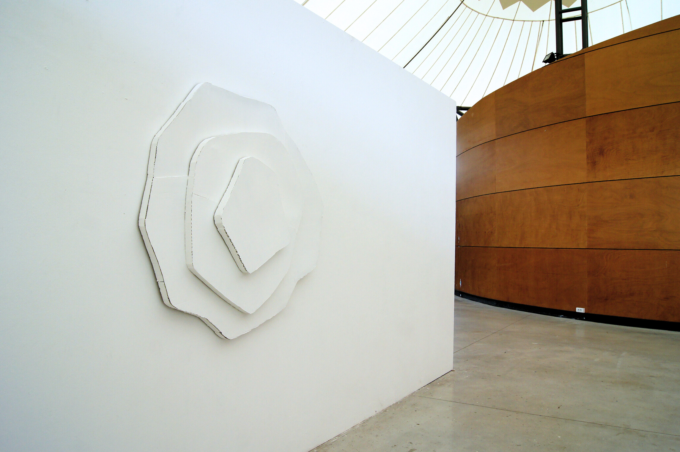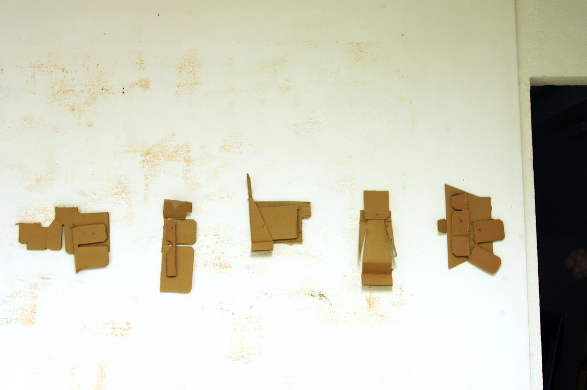 Je décidais de créer, sans une pré-interrogation. Et je découvrais que le carton, par sa souplesse, sa rigidité et sa légèreté, son abondante présence dans les rues et les zones commerciales, et avec un minimum d'outils et de moyens, pouvait être une matière très malléable. Il peut être fragile comme résistant, il peut être grand, épais, mais sans être lourd. Peint ou brut, mes « structures-objets » sont entre la sculpture, le tableau et l'installation. Je les travaille comme des volumes, des peintures, des surfaces de projection. (2012)